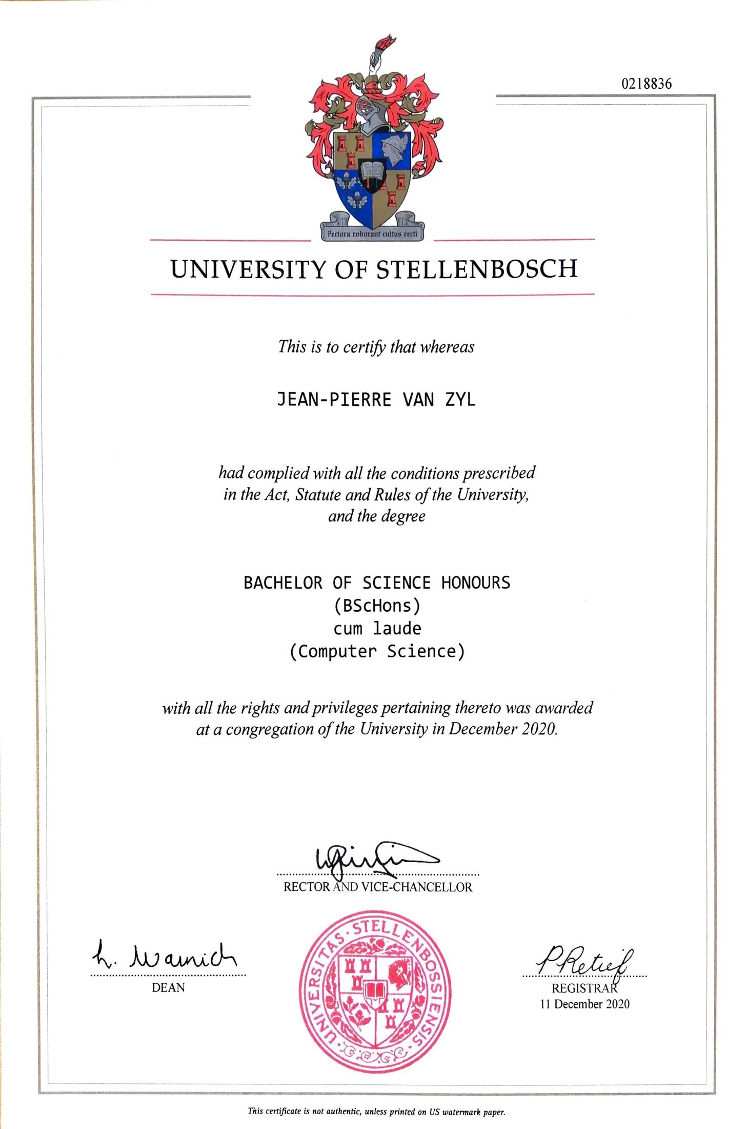 Bachelor of Science (Honours) in Computer Science (Cum Laude)